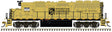 In 1966 EMD introduced a new line of locomotives based on the 16-cylinder 645-series prime mover. The “40-series” included a six-axle and four-axle model, the latter being the GP40. A total of 1,145 units were produced between 1966 and 1972. These turbocharged 3,000hp locomotives were used primarily in road freight service. The GP40 was a versatile locomotive that could be found across the US hauling drag freights over mountain passes and leading high-speed intermodal trains across flat terrain. Three rooftop radiator fans at the rear of the long hood differentiate a GP40 from its lower horsepower counterpart, the GP38, which has two fans at this location.