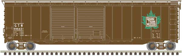 ATLAS 20004414 Postwar 50' Double-Door Boxcar - Grand Trunk Western #596388 (Boxcar Red, green; Maple Leaf Logo) HO Scale is backordered and will ship as soon as it is back in stock.