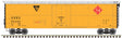 A joint effort from General American and Evans Products, these AAR class bunkerless refrigerator cars were produced beginning in the early 1950s. Featuring two large horizontal panels flanking a 7’7” door, these cars had a very unique appearance due to the horizontal rivet strip that joined the panels. With fewer seams than a standard box car, these cars were supposed to be less prone to rust and leakage. By 1959, over 1,000 of these boxcars were produced.