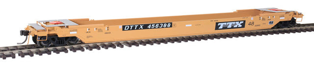 Gunderson's 48' all-purpose well car was introduced into service in 1993. The car was a design extension of previous well cars that carried containers only. The all-purpose feature meant that it could carry either containers or trailers giving it greater versatility for intermodal trains. The height of the sides are lower than previous container-only well cars to allow trailers to clear while being loaded into the car by lift equipment. This design also featured two hitches for transporting two 28-foot trailers.