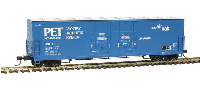Atlas 20006778 USLX - PET Inc. #11134 (blue, white) Evans 53' Double Plug-Door Boxcar HO Scale - Picture may show a different road number.
