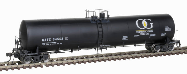 ATLAS Master 20006888 Trinity 25,500-Gallon Tank Car Owensboro Grain GATX #54553 (black, white, yellow) HO Scale. Picture may show a different road number.