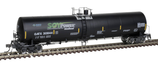 ATLAS Master 20006894 Trinity 25,500-Gallon Tank Car Soy Power Bio Fuels GATX #30829 (black, blue, green, white) HO Scale. Picture may show a different road number.
