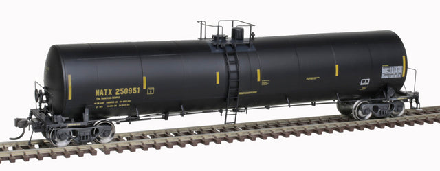 ATLAS Master 220006899 Trinity 25,500-Gallon Tank Car NATX #250932 (black, yellow UTCK repaint) HO Scale. Picture may show a different road number.