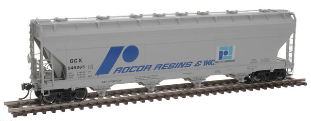 Atlas 20006909 5250 Covered Hopper GCX - Rocor Resins #945265 (gray, blue) HO Scale. Picture may show a different road number.