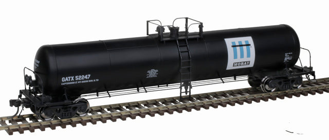 The Atlas model of the 20,700 gallon tank car was introduced in the mid-Sixties by General American Transportation Corporation, more commonly known simply as GATX. The design is a general-purpose, non-insulated, non-pressure tank car. The Atlas model recreates two major saddle variations (Type 10 and Type 20) and two top platform variations (one- and two-piece). The more common products carried in this tank car were tallow, animal fat, fuel oil, diesel fuel, vegetable oil, soybean oil, fertilizers, lubricating oil, waste oil, and glycol.