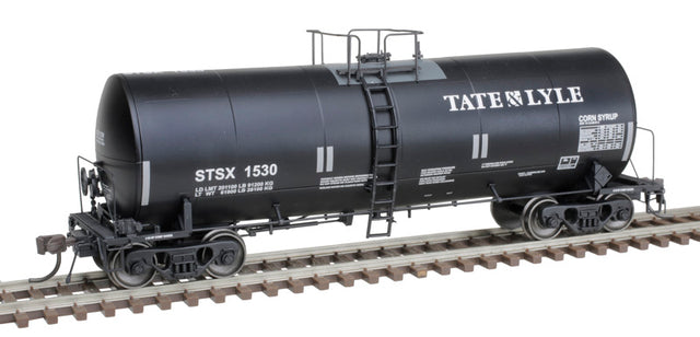 Atlas 20007214 Trinity 17,600-Gallon Corn Syrup Tank Car - STSX Tate & Lyle #1794 (black, white, silver, Conspicuity Stripes) HO Scale