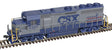 Atlas' high quality N Scale locomotive is modeled after Electro Motive Division's 2000 horsepower GP-38 diesel introduced in the late 1960s and built through the early 1970s and is still in service today throughout North America. The GP-38 is usually identified by its two radiator fans located on top of the long hood and two small exhaust stacks.