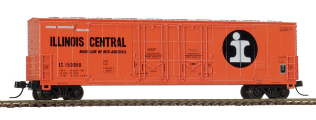 Atlas 50005205 Evans 53' Double Plug-Door Boxcar - IC Illinois Central #150058 (orange, black, white) N Scale. Picture may show a different road number.