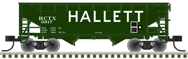 Atlas Master 50006137 2-Bay Offset Side Hopper - HCTX Hallett #9918 (green, white) N Scale. Picture may show a different road number.