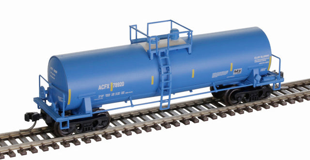 Atlas 50006147 ACFX #78920 (blue, white, yellow conspicuity marks) ACF 14,000 Gallon Kaolin Tank Car N Scale. Picture may show a different road number.