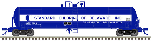 The new Atlas model of the 20,700 gallon tank car was introduced in the mid-Sixties by General American Transportation Corporation, more commonly known simply as GATX. The design is a general-purpose, non-insulated, non-pressure tank car. The Atlas model recreates two major saddle variations (Type 10 and Type 20) and two top platform variations (one- and two-piece). The more common products carried in this tank car were tallow, animal fat, fuel oil, diesel fuel, vegetable oil, soybean oil, fertilizers, lubricating oil, waste oil, and glycol.