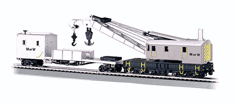 Bachmann 16138 250-Ton Crane Car & Boom Tender Maintenance-of-Way (Silver, black) HO Scale