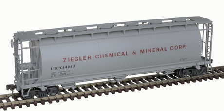 Atlas 20007187 ACF 3-Bay Cylindrical Hopper - UTCX Ziegler Chemical #44045 (gray, red) HO Scale