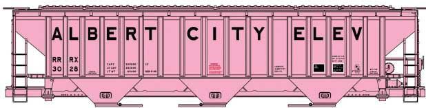 Pullman-Standard 4750 3-Bay Covered Hopper - Kit -- Albert City Elevator RRRX #3028 (pink, black)