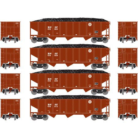 Athearn ATH25569 40' 3-Bay Ribbed Hopper w/Load BNSF Set #2 4 Pack N Scale