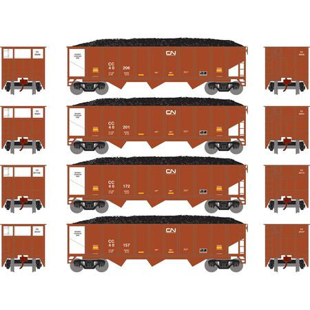 Athearn ATH25577 40' 3-Bay Ribbed Hopper w/Load CC Canadian National Set #1 4 Pack N Scale