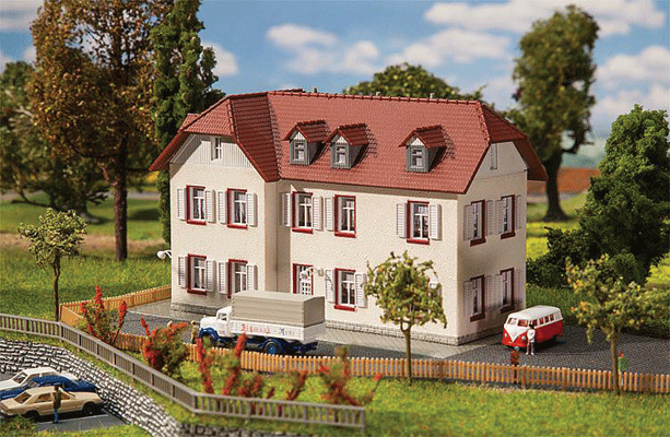 Faller 232216 Two-Story Corner Building -- Kit - 4-1/2 x 2-15/16 x 3-1/4" 11.4 x 7.5 x 8.3cm N Scale is backordered and will ship as soon as it is back in stock.