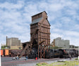 Based on a typical two-track design, the Walthers Cornerstone Wood Coaling Tower will be a focal point in any engine terminal. Towers like this were built in yards at servicing facilities as well as along the mainlines and branchlines to refuel engines on the road. This easy-to-build plastic model features a realistic coal bunker plus detailed chutes and mechanisms. A hopper unloading shed sits along one side for receiving coal. Like the prototype, it can serve two tracks at once, making it an ideal choice for maximizing service in minimum space. Place it in the vicinity of a roundhouse or engine shed, turntable, water tank and sand tower and you'll have a complete engine servicing facility for your railroad. The Wood Coaling Tower could still be standing in a late-steam or early-diesel era scene, a reminder of how things used to be.