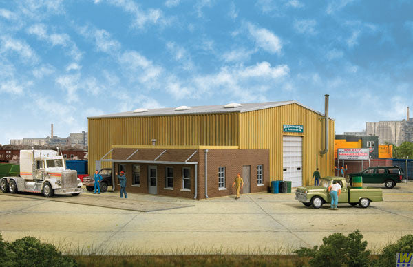 The old sayings "everything old is new again" and "one man's trash is another's treasure" certainly applies to salvage businesses like the Walthers Cornerstone Washington Salvage Yard. Today, the range of man-made materials being recycled into new products is growing and includes all kinds of metals, rubber, plastics, paper and more. Combining office and a large work area into one structure, Washington Salvage is typical of the main buildings at many businesses, especially today's materials recycling facilities found in many communities. And, this combination of brick office and steel garage structure has been common since the 1960s, so your model could also serve as a county or city highway department garage, bus barn for a local mass transit authority, construction company offices, a railroad maintenance vehicle garage, truck or farm equipment dealership or any one of hundreds of similar businesses.