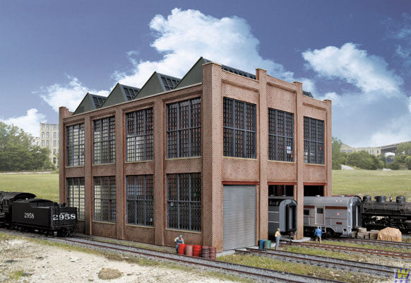 Without the car shop, a railroad just doesn't run. Big enough to look right, small enough to fit steam or diesel-era layouts, this model is packed with features. Detailed brickwork, an authentic saw-tooth style roof with skylights, separate windows, roll-up doors, openings in the floor for rail, everything right down to the decals, is included. The basic Car Shop kit as shown builds a three-stall shop measuring 11-5/8 x 8-13/16 x 7-5/8" 29.5 x 22.4 x 19.4cm. The Car Shop is one of a wide variety of Cornerstone HO railroad buildings.