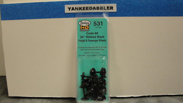 531 Kadee / 36" Diameter Ribbed Back Code 88 "Semi-Scale" Wheelsets Package of 12 (HO Scale) Part # 380-531 is backordered and will ship as soon as it is back in stock.