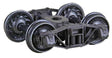 “HGC” Two Piece, Equalized Trucks with Self-Centering: “HGC” High Gravity Compound weighs nearly the same as Metal Trucks but with more detail & a 2 piece split bolster design for more efficient truck equalization, reduced axle friction for greater rolling performance. Metal RP-25 wheels with insulated plastic axles, scale clip on brake pads & brake rigging, & Self-Centering Action. The Self-Centering Action trucks self align themselves parallel with the car for easier placement on track.