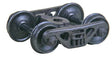 | The ASF® 100-ton Roller Bearing Truck is from the modern diesel era. It has standard 36 inch wheels and a longer wheel base than the 50 or 70 ton roller bearing trucks. Our model is a faithful reproduction of the American Steel Foundries® Ride Control® truck. This truck is currently in use under a variety of rolling stock in North America. |
