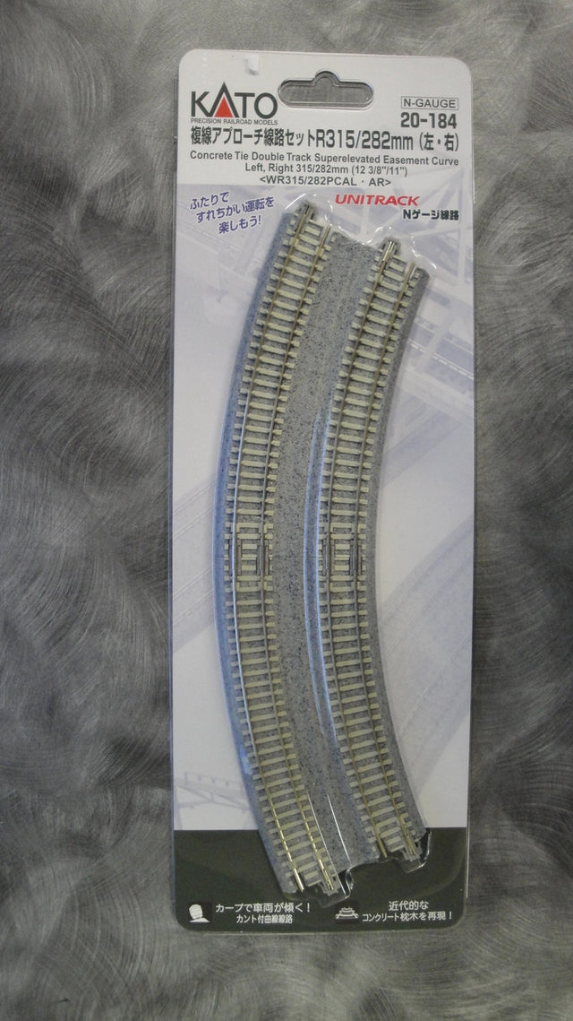 Kato 20-184 Unitrack 315mm/282mm Radius 22.5º (12 3/8" - 11") CT Double Track Easement Curve Track Right and Left; N Scale, 20184 is backordered and will ship as soon as it is back in stock.