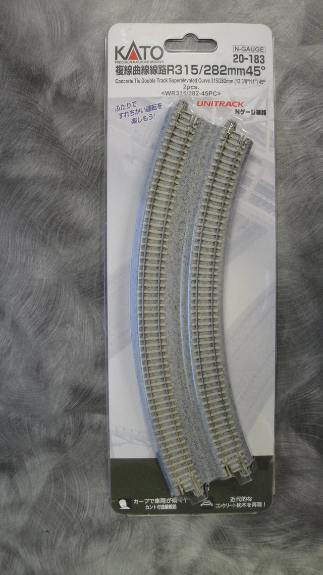 Kato 20-183 Unitrack CT Double-Track Superelevated Curve -- 45 Degrees, 11/12-3/8" 28.2/31.5cm Radius N Scale, 20183