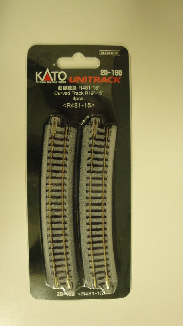 Kato 20-160 Unitrack 481mm (19") Radius 15º Curve Track [4 pcs]; N Scale, 20160