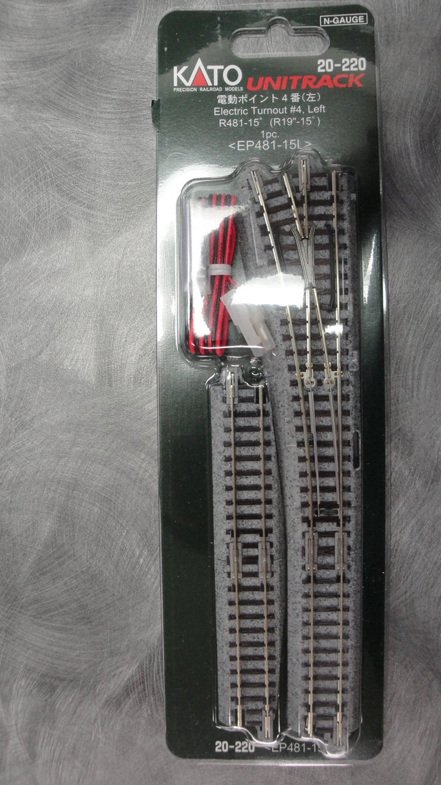 Kato 20-220 Unitrack #4 Left Turnout with 481mm (19") Radius Curve; N Scale, 20220