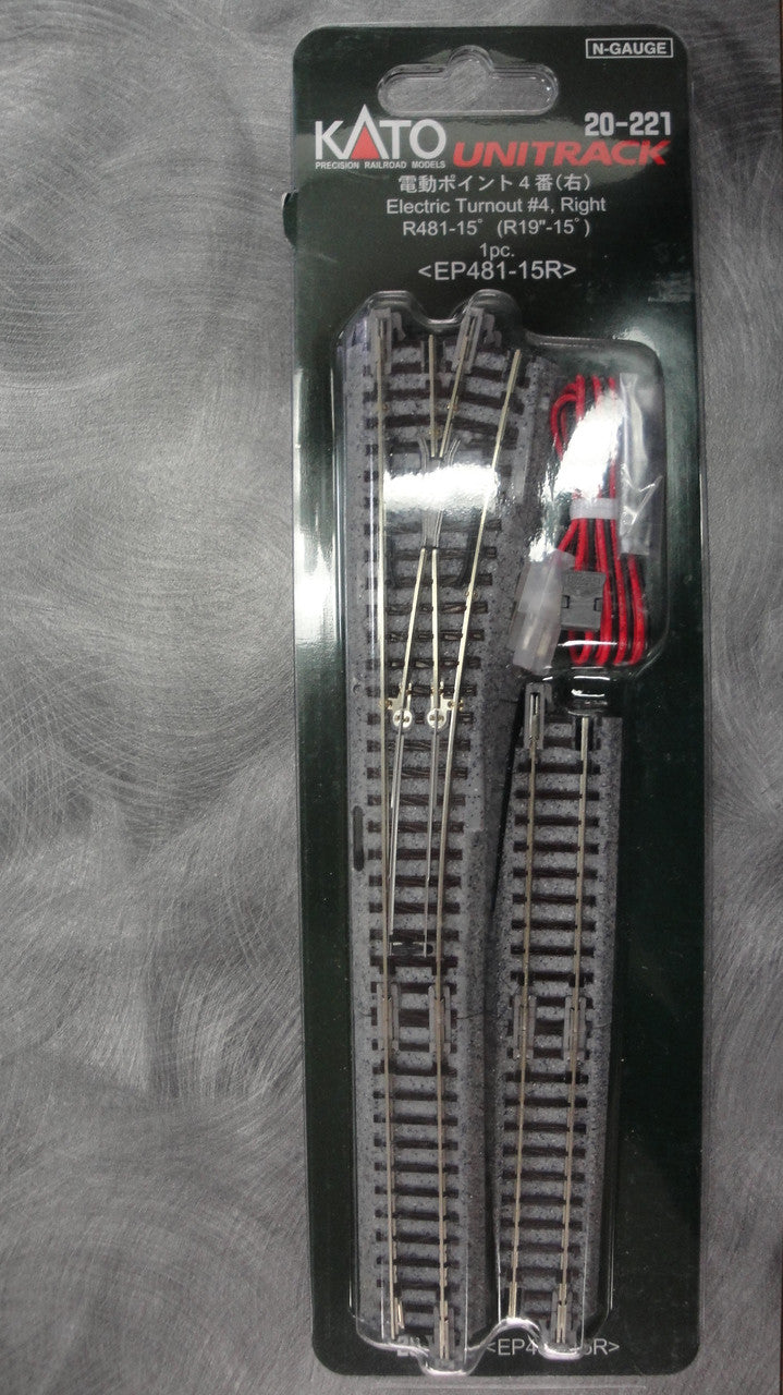 Kato 20-221 Unitrack #4 Right Turnout with 481mm (19") Radius Curve; N Scale, 20221