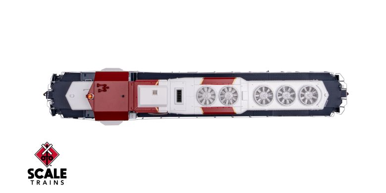 • Front EMD-style high pilot plow without multiple unit (MU) hose doors and grab irons and rear multiple unit (MU) hose catch tray
