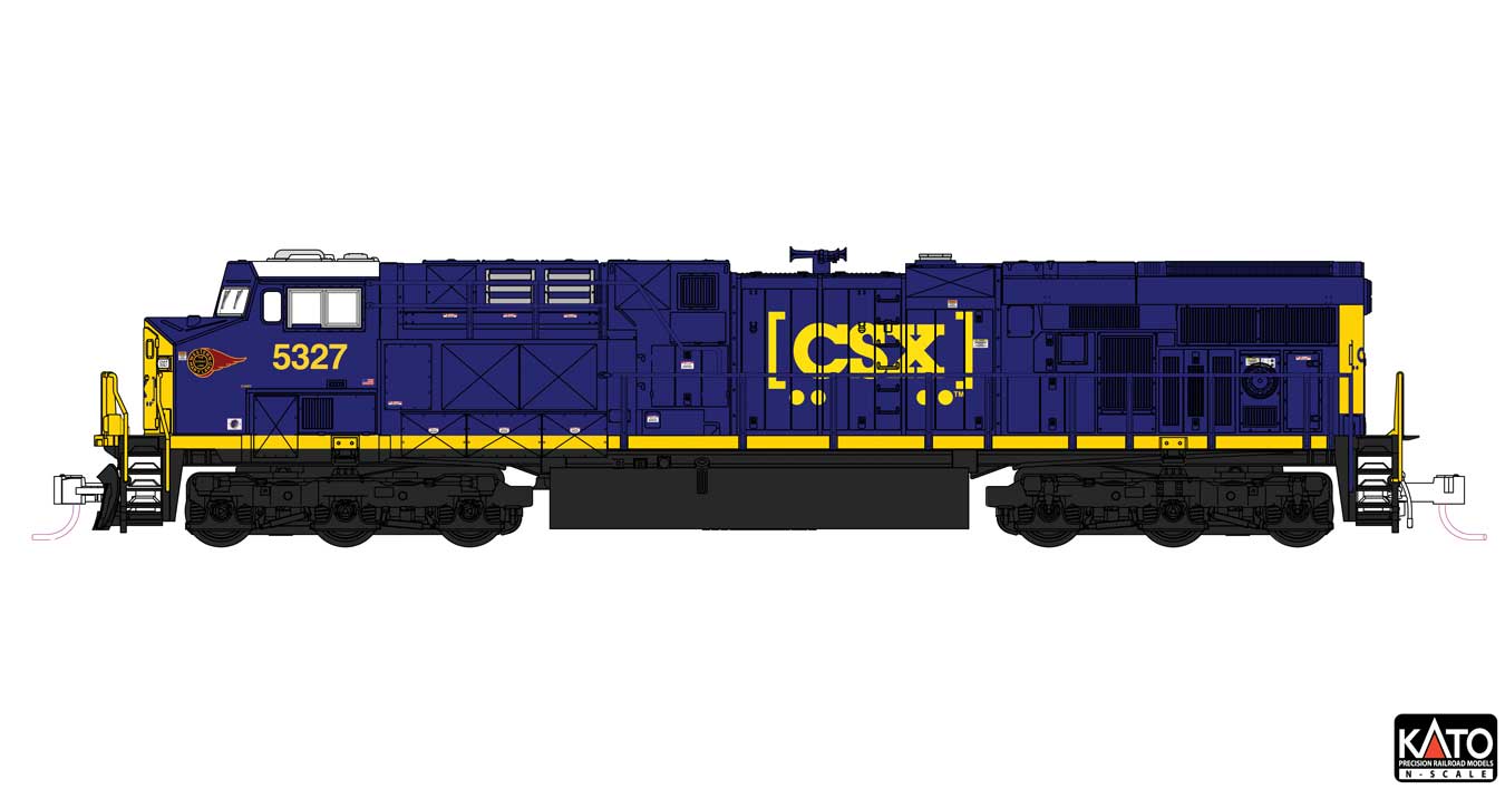 Kato 176-8962 GE ES44AC GEVO - Standard DC -- CSX #5327 (blue, yellow, Boxcar Logo, Western Maryland Sticker) N Scale is backordered and will ship as soon as it is back in stock.