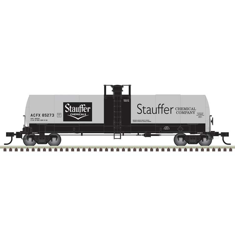 Atlas 50006908 ACF 17,360-Gallon Tank Car - Ready to Run - Master(R) -- Stauffer Chemical ACFX #85286 (gray, white, black) N Scale is backordered and will ship as soon as it is back in stock.