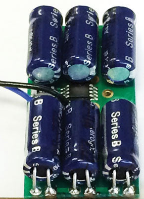 The Small Sized NH will allow a typical HO locomotive to travel over a dirt clod that is 3 feet long if needs be and still operate the lights with NO FLICKER! Do not exceed DCC track voltage of 15v. 1.25" x .64" x .29" 32 x 16 x 7.5 mm
