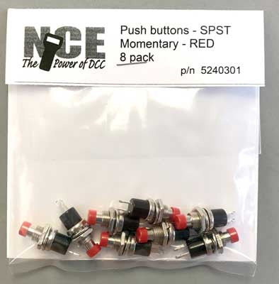 301 NCE / 8 pack N.O. Momentary SPST Pushbutton Red(SCALE=ALL) Part # 524-301
