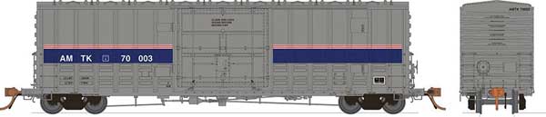 Rapido 137007-2 Class B-100-40 Plug-Door Boxcar Amtrak (Phase IV, silver, blue, red) #70008 HO Scale. Picture may show a different road number.