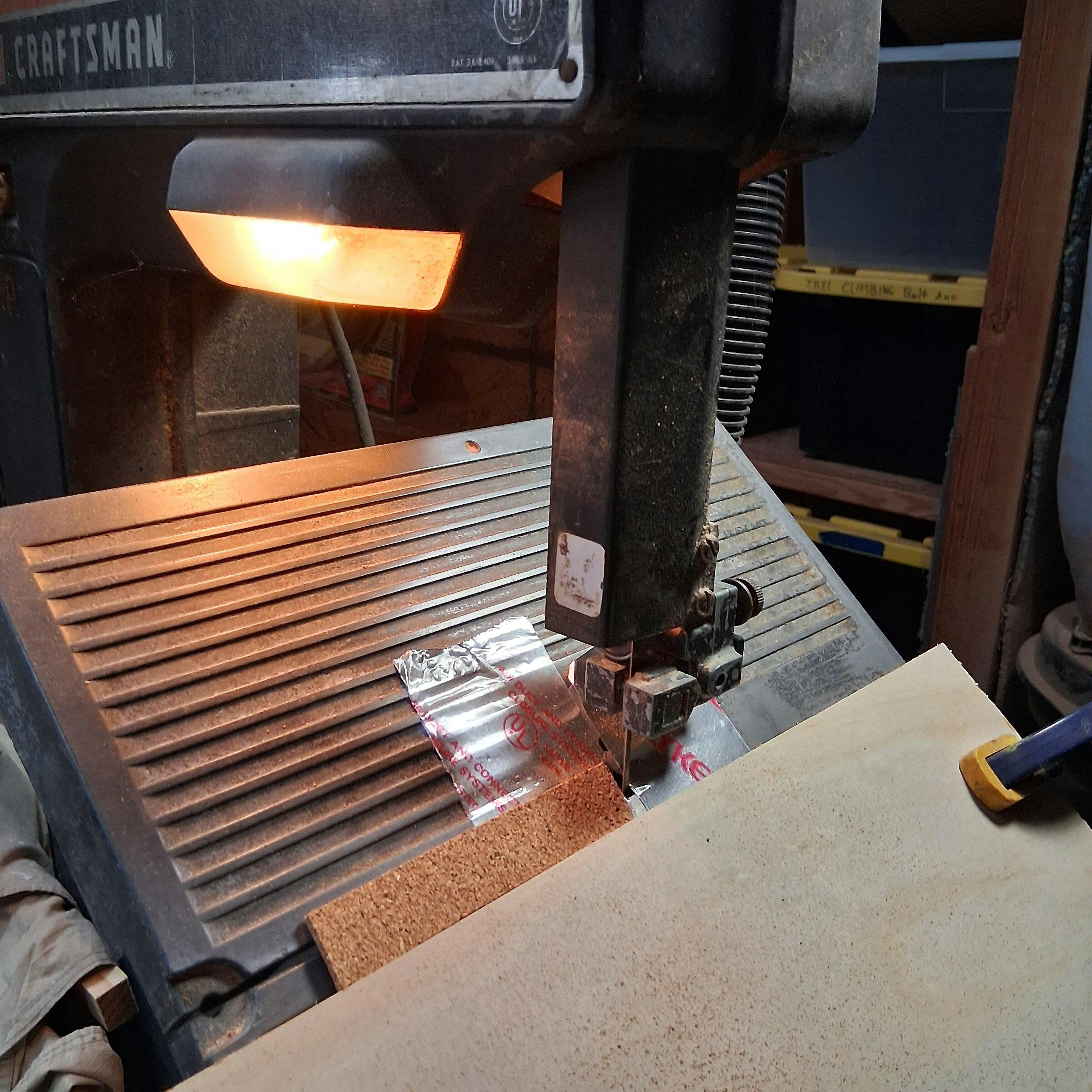 The cork is installed by laying a strip and then running a bead of caulk to give you the beveled edge.