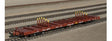 Well over 1,100 F68AH bulkhead flats were built before production of the design ceased in August 1974. And as with almost any rolling stock design with a lengthy production span, subtle changes crept into the basic design. While early builds featured an “H” shaped fabricated jacking pad at the bolsters, during the final two years of production, this changed to a fabricated box with an integral roping eye. And while all were built with transverse steel risers in the deck, this feature would start to be removed from the fleet after a few years of service.