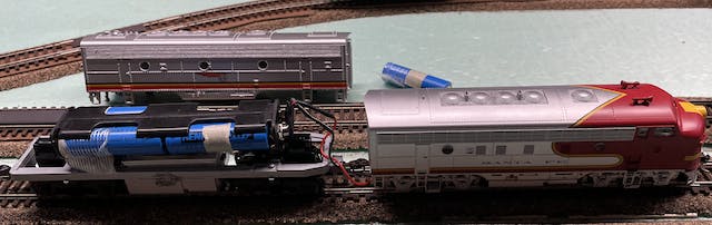 The BLU-21PNEM8 can be wired to a CurrentKeeper (P.N. 810140 or 810160) to maintain performance over dirty track and switches.