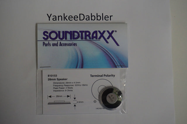 810153 Soundtraxx / 28mm Round, 8 Ohm (2 Watt) Replaces 810054 (SCALE=ALL) Part # = 678-810153 is backordered and will ship as soon as it is back in stock.