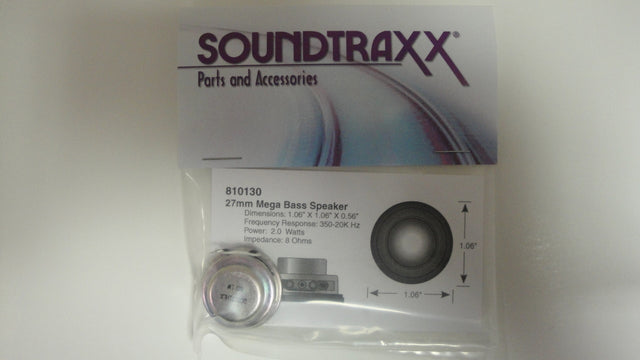 810130 Soundtraxx / 27mm Round x 14.3mm D, 8 Ohm Mega Bass (SCALE=ALL;SCALE=HO;SCALE=Z;SCALE=N;SCALE=O;SCALE=G) Part # = 678-810130 - HO is backordered and will ship as soon as it is back in stock.