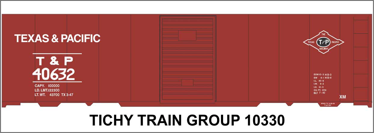 Tichy Train Group 10330 Railroad Decal Set -- Texas & Pacific 40' Steel Boxcar (with T&P Logo) HO Scale is backordered and will ship as soon as it is back in stock.