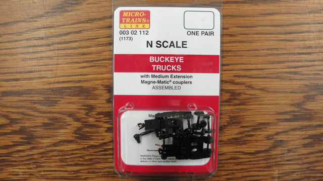 00302112 MICRO TRAINS / 003 02 112 Freight Car Trucks 1 Pair -- Buckeye 3-Axle (1173) (SCALE=N) is backordered and will ship as soon as it is back in stock.