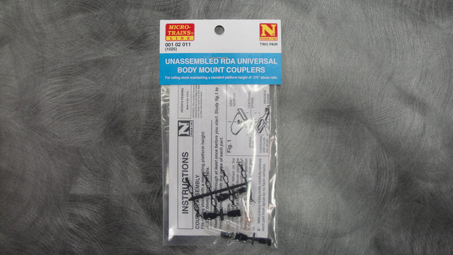 00102011 MICRO TRAINS / 001 02 011 UNASSEMBLED RDA UNIVERSAL BODY MOUNT COUPLERS (1025) (SCALE=N) is backordered and will ship as soon as it is back in stock.