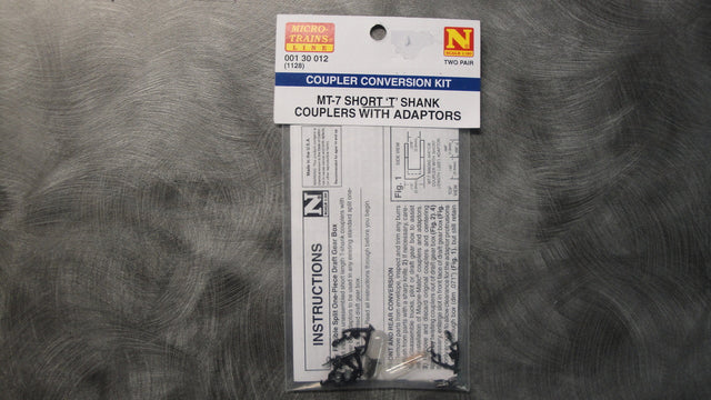 00130012 MICRO TRAINS / 001 30 012 MT-7 SHORT 'T' SHANK COUPLERS WITH ADAPTORS (1128) (SCALE=N) is backordered and will ship as soon as it is back in stock.