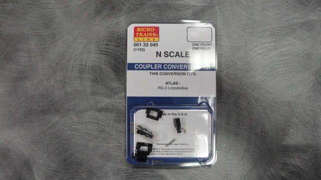00132040 MICRO TRAINS / 001 32 040 Coupler Conversion Kits w/Pilot Face Atlas RS3 (1152) (SCALE=N) is backordered and will ship as soon as it is back in stock.
