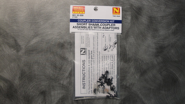 00133030 MICRO TRAINS / 001 33 030 SHORT SHANK COUPLER ASSEMBLIES WITH ADAPTORS Bac (1133) (SCALE=N) is backordered and will ship as soon as it is back in stock.